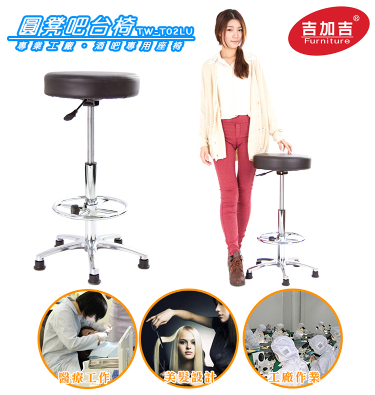 TW-T01圓凳工作椅,為工廠、診所使用,方便長時間工作作業使用,或詢問門診病患,功能單純方便,功能單純方便,簡約質感。