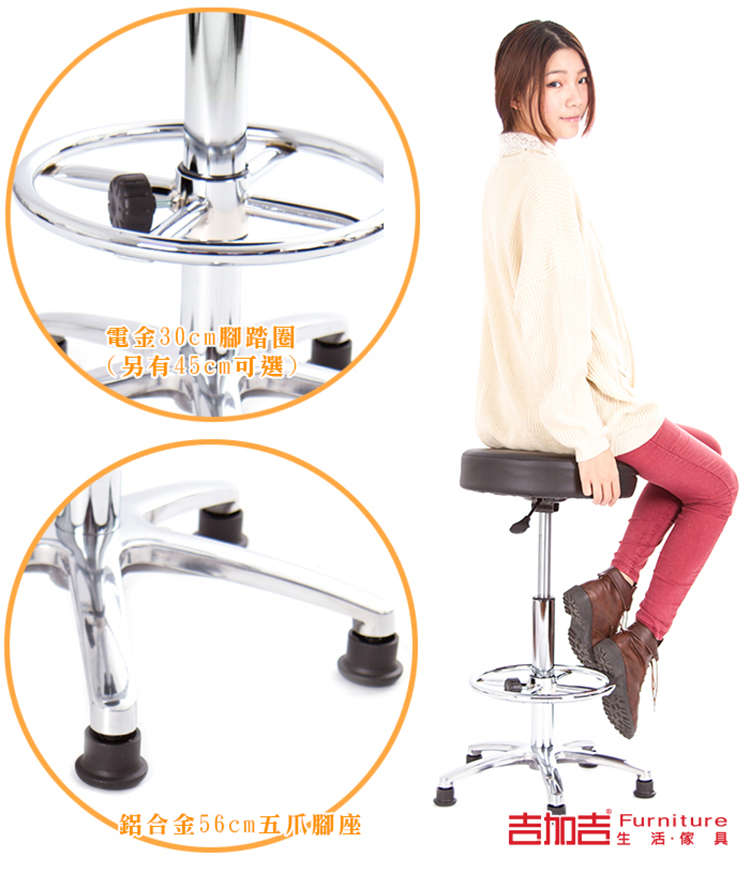 精緻金屬踏圈,有直徑30、45cm可選,在您使用吧台、櫃台時,高座位可腳踩踏不懸空。