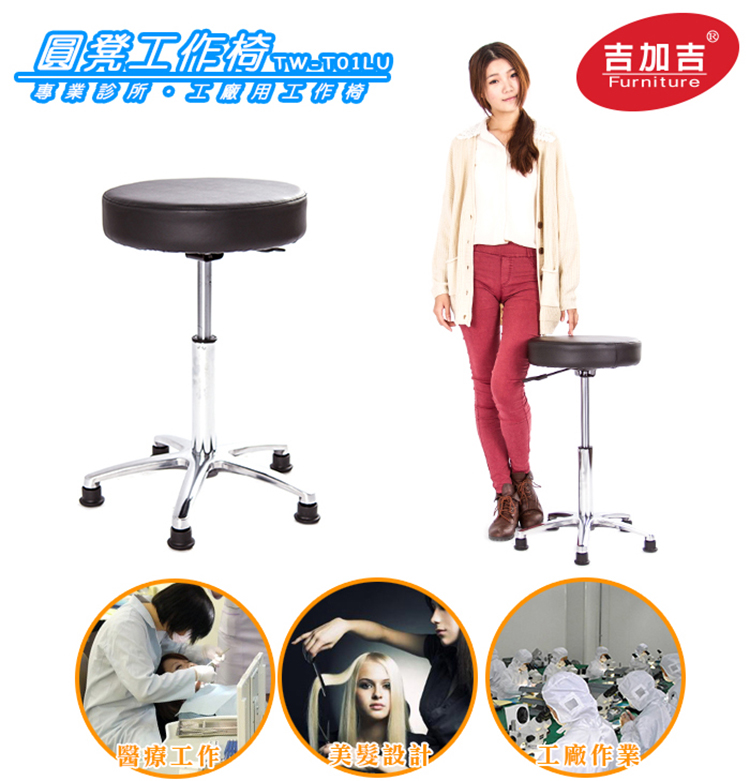 TW-T01圓凳工作椅,為工廠、診所使用,方便長時間工作作業使用,或詢問門診病患,功能單純方便,功能單純方便,簡約質感。