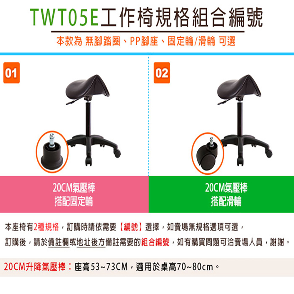 本款TW-T05馬鞍椅系列,為工廠、診所、美髮業者...等使用,針對長時間工作使用,方便使用者在移動,常會將自身重心左右、前後擺動,