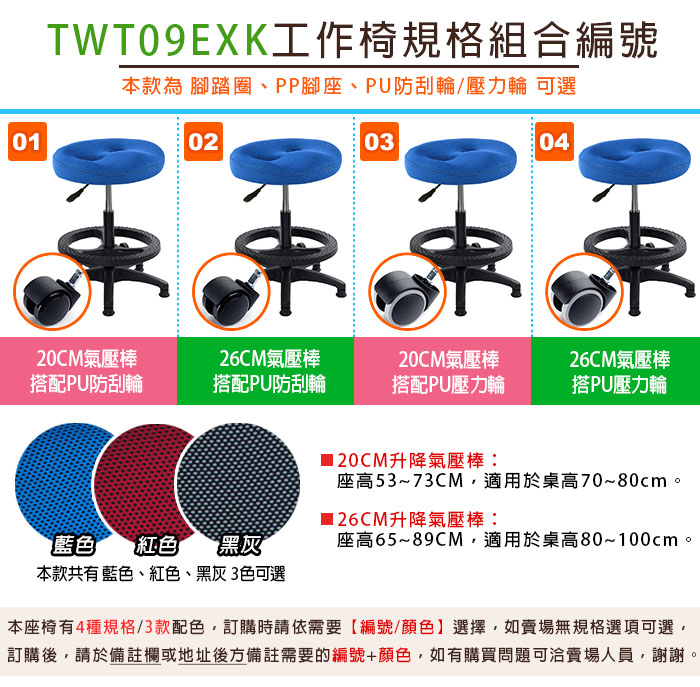 TW-T09EXK 附踏圈+PP腳座款+PU防刮輪 工作椅