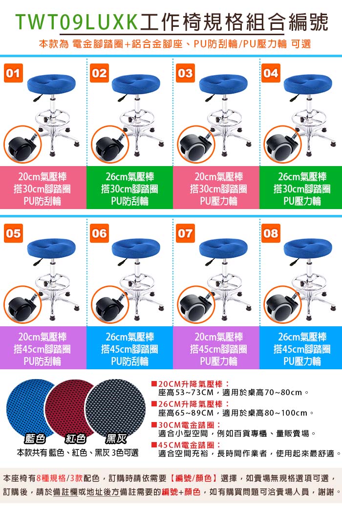 TW-T09LUXK 電金踏圈+鋁合金腳座款 工作椅