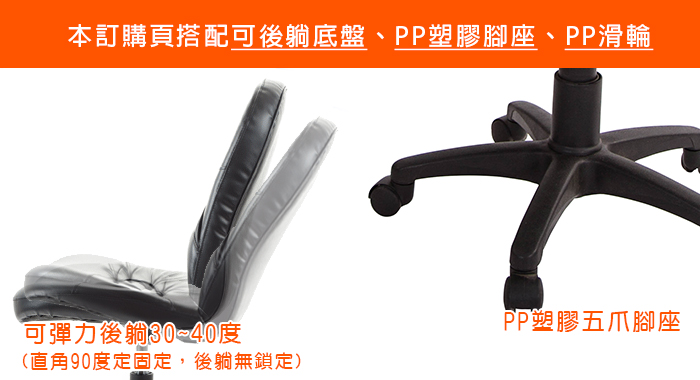 GXG 短背皮面 無扶手電腦椅 (可後躺/塑膠腳) 型號1008EK