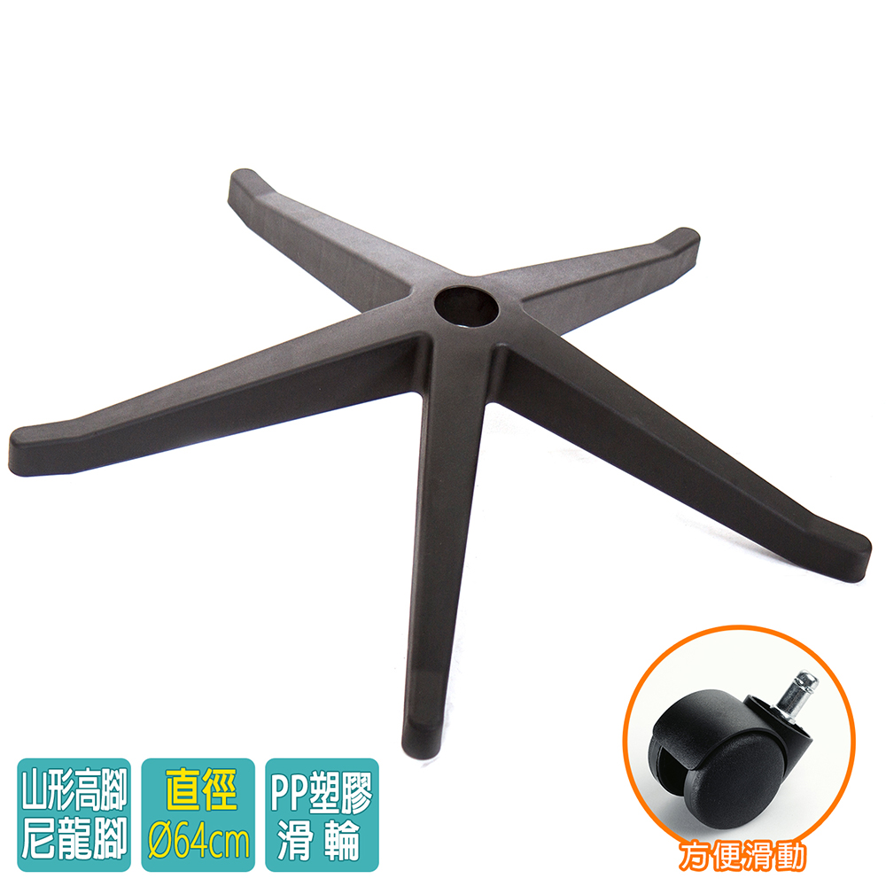 電腦椅專用 高腳尼龍腳座 (直徑66cm/PP滑輪)BASE-013LL
