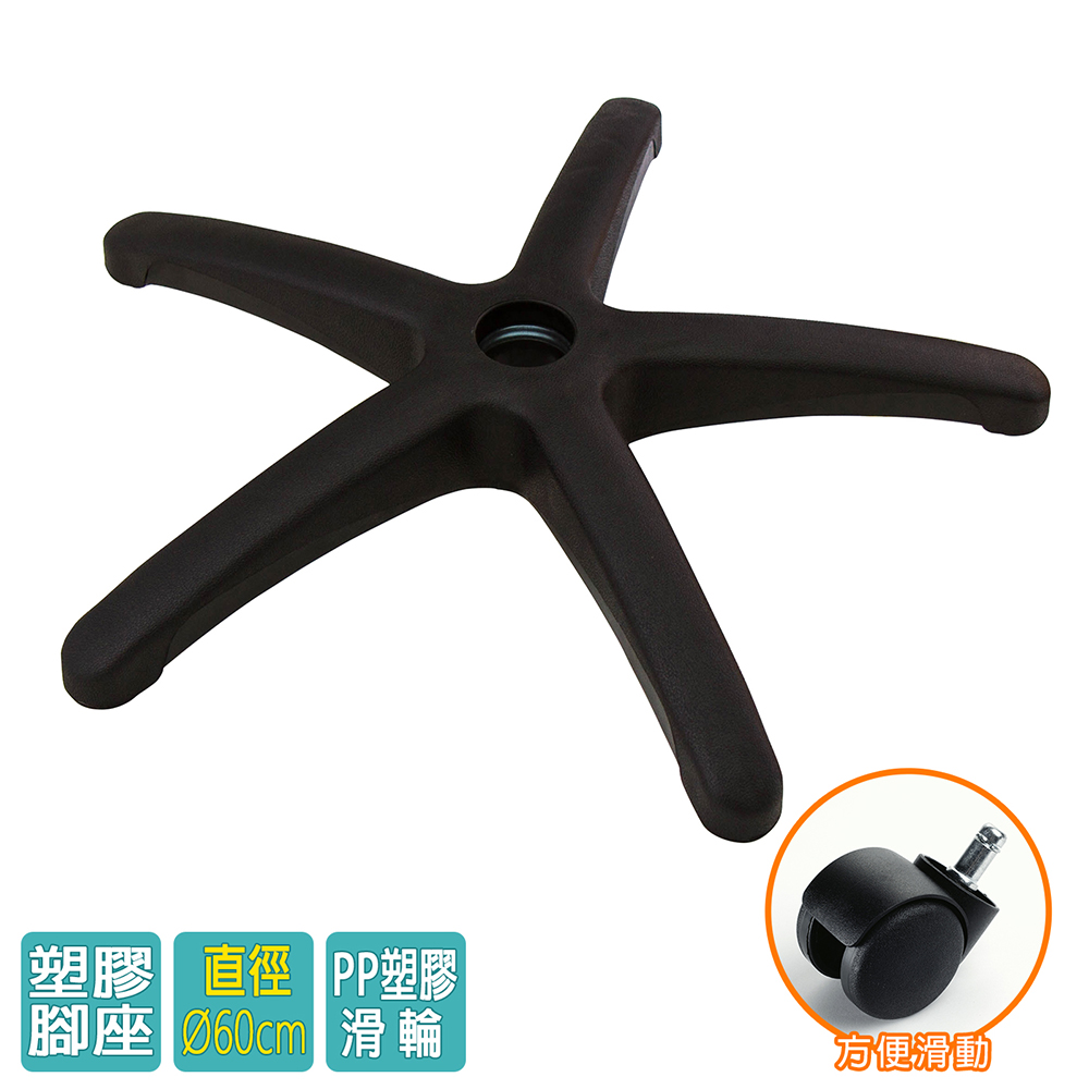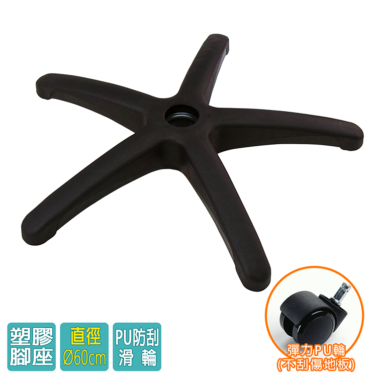 電腦椅專用 五星塑膠腳座 (直徑60cm/附PU防刮輪)BASE-003PU