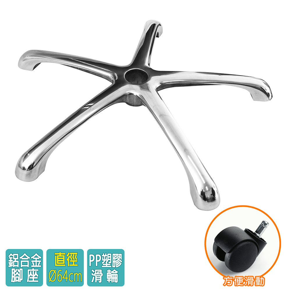 電腦椅專用 五星鋁合金腳座 (直徑64cm/PP滑輪)BASE-006LL