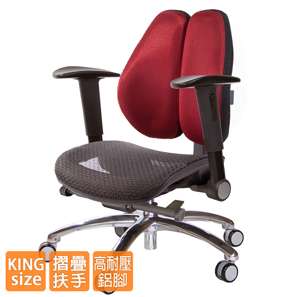 GXG 大網座 低雙背工學椅(鋁腳/摺疊滑面扶手) 型號3075LU1J