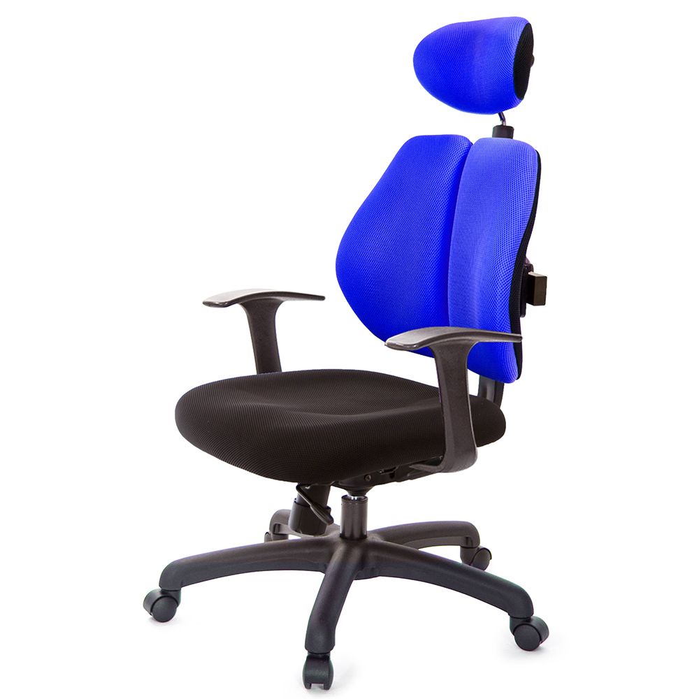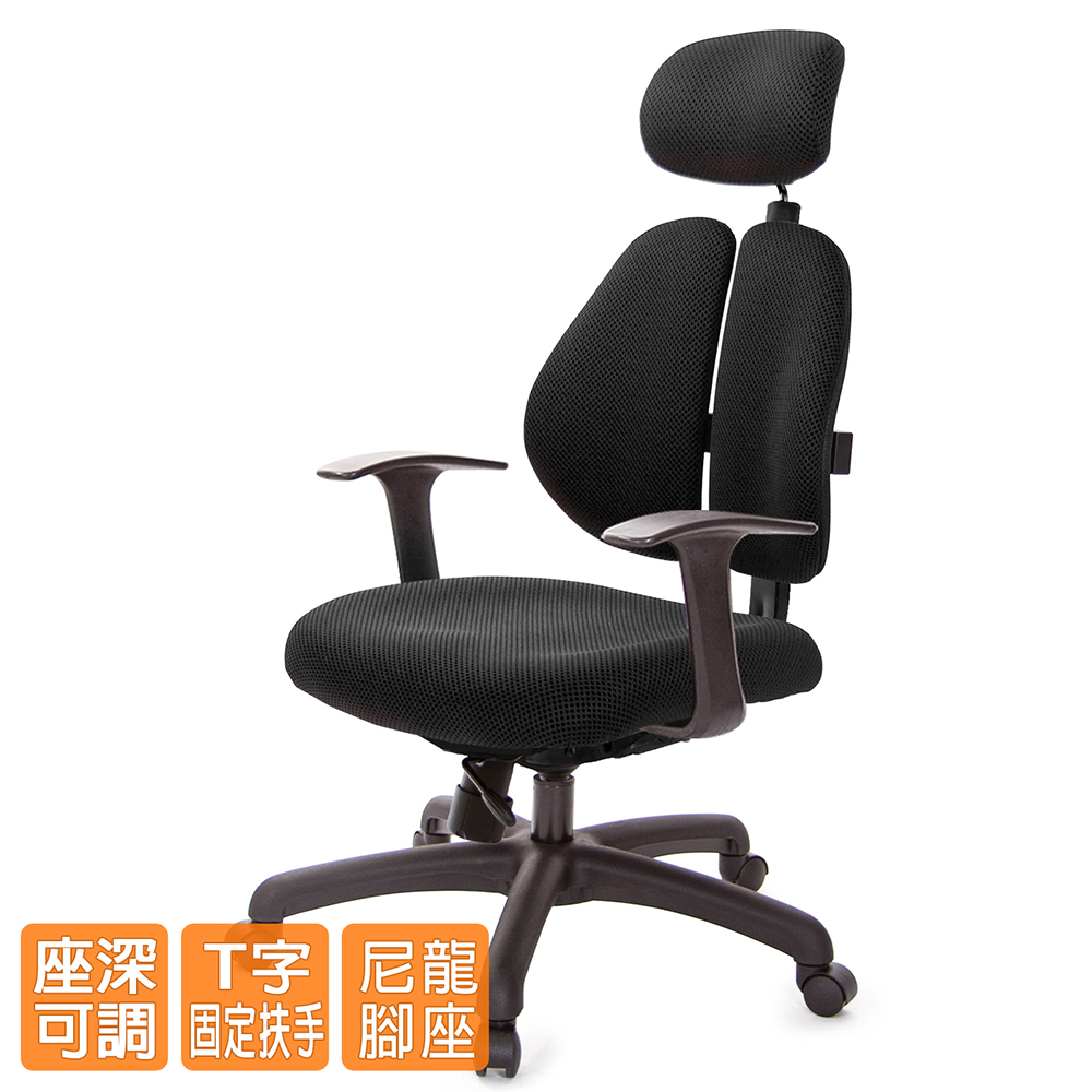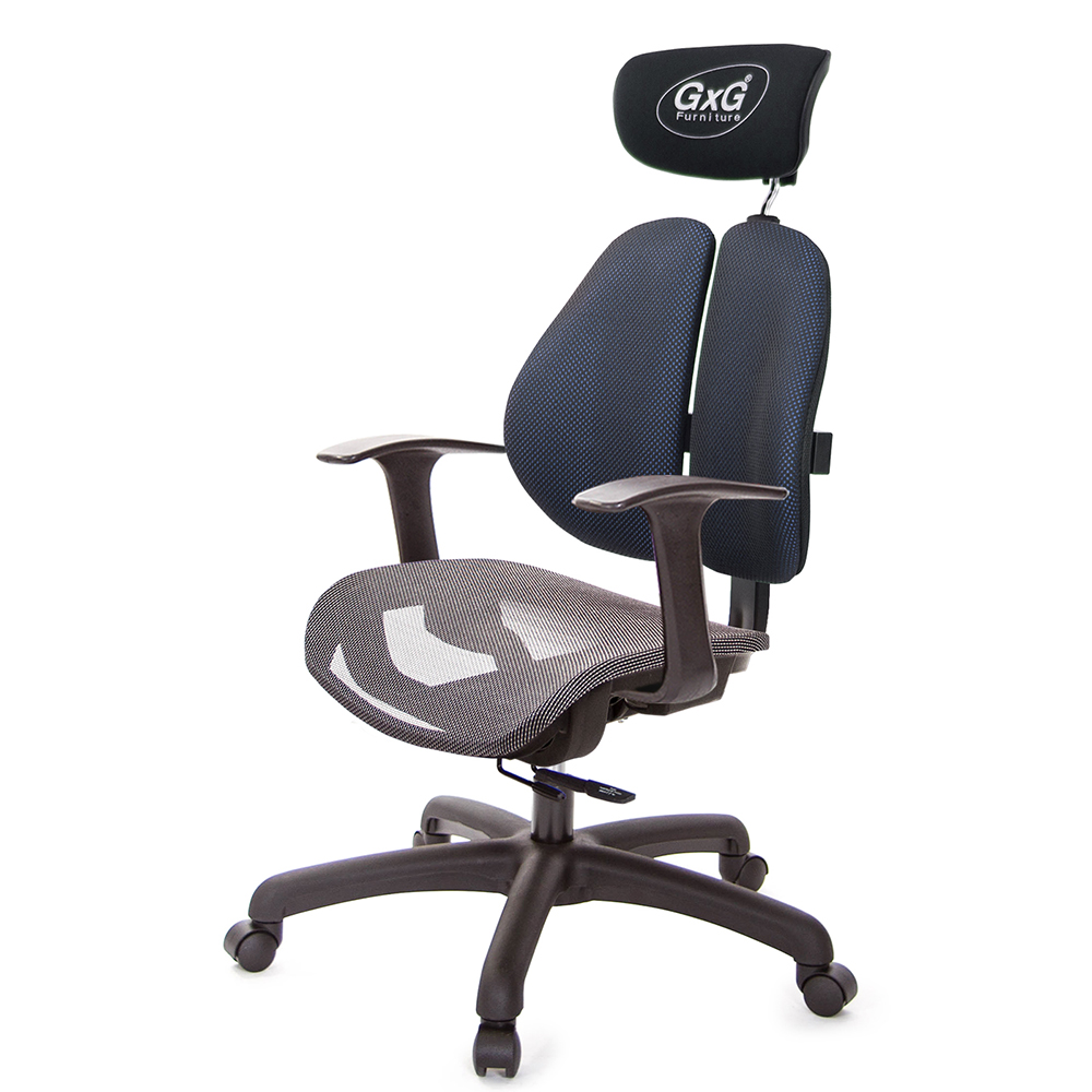 GXG 雙軸枕 雙背工學椅(T字扶手) 中灰網座 型號2706EA