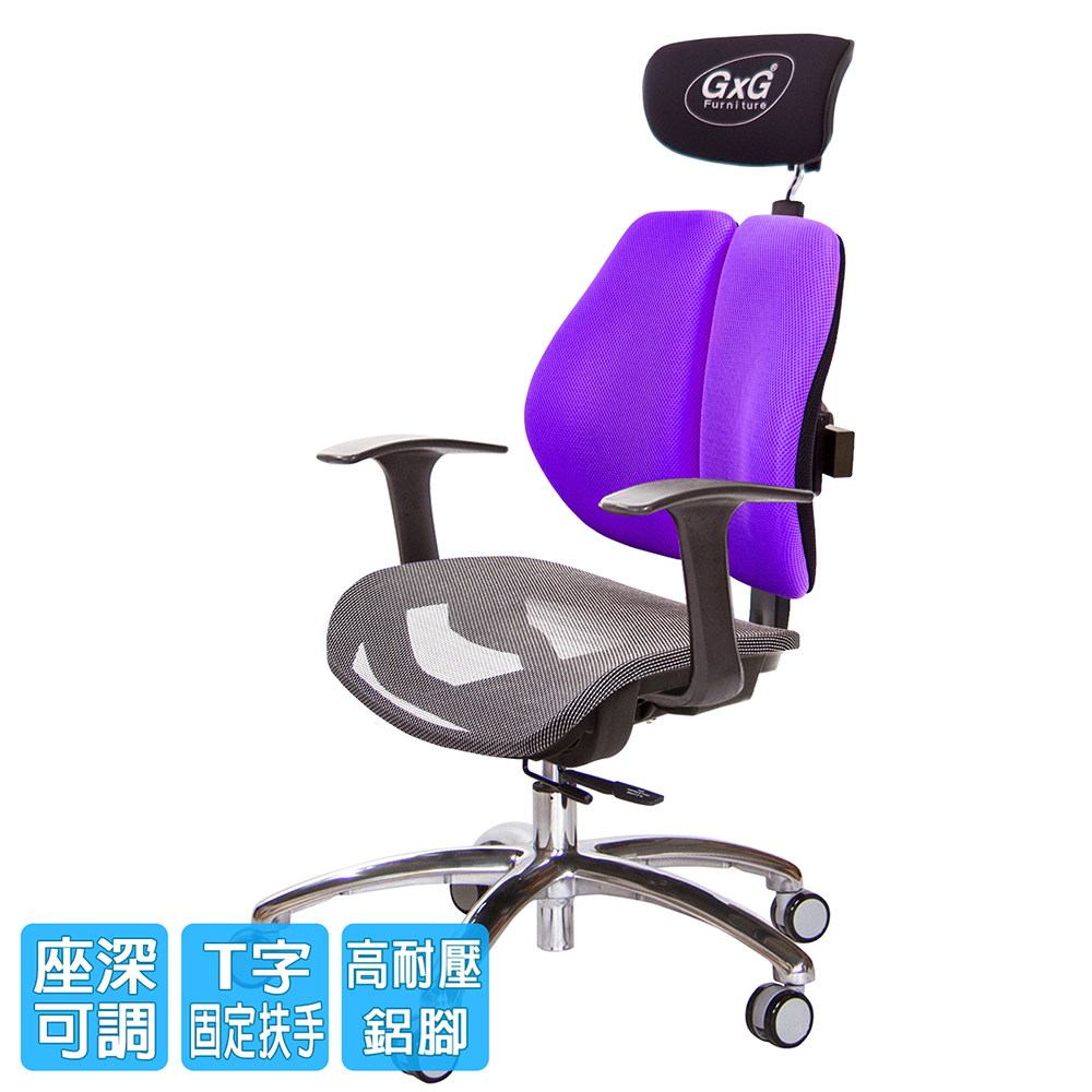 GXG 高背涼感 雙背工學椅 (鋁腳/T字扶手) 型號2994LUA