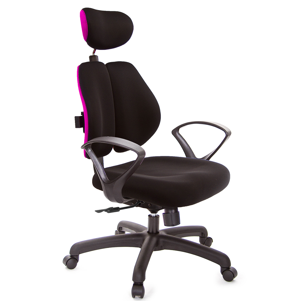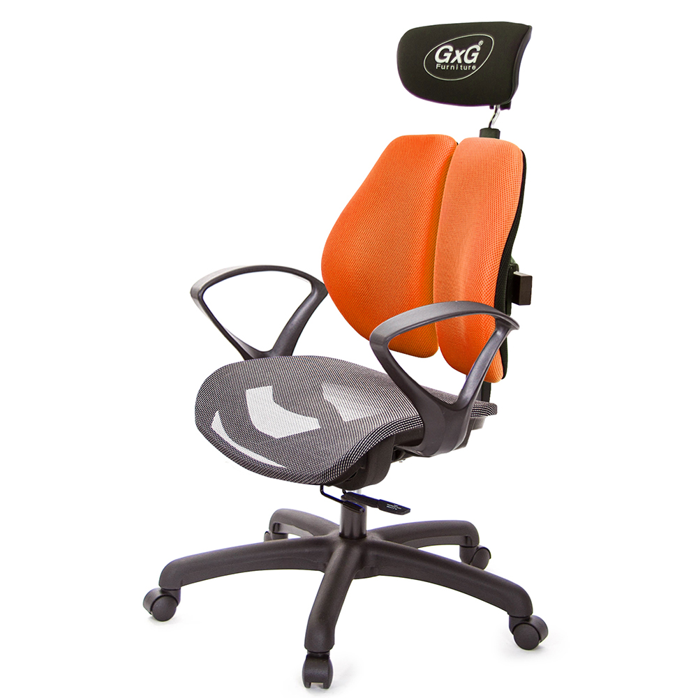 GXG 雙軸枕 雙背工學椅(D字扶手) 中灰網座 型號2706EA4