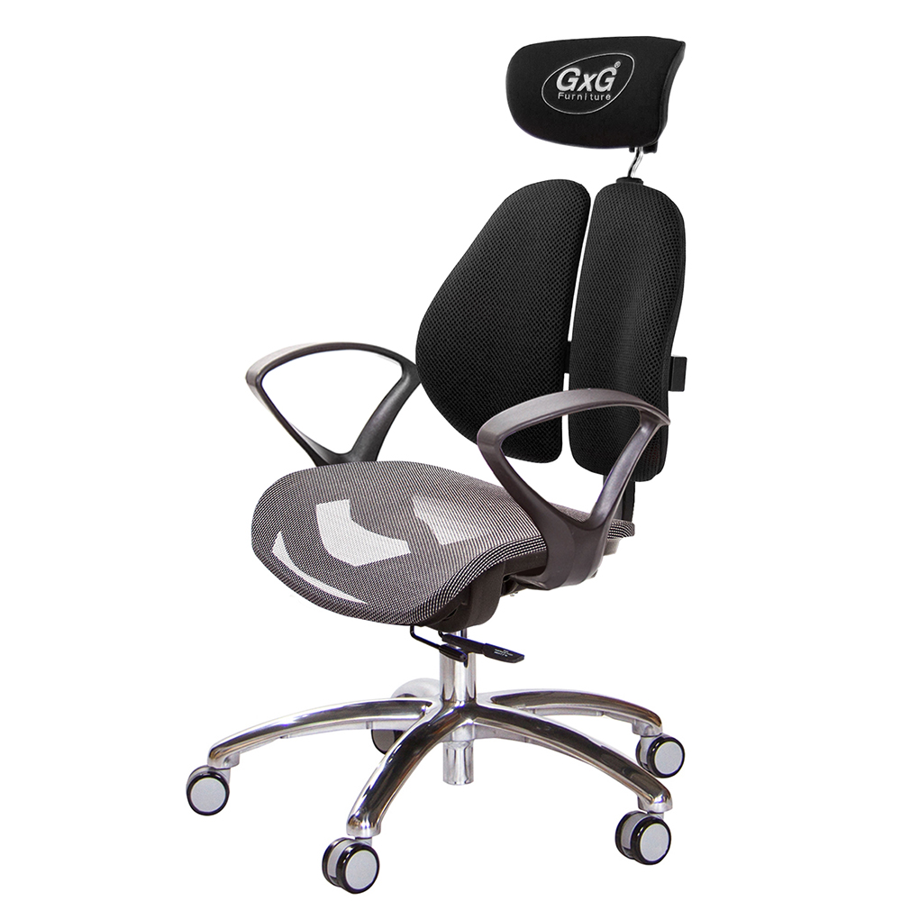 GXG 雙軸枕 雙背工學椅(鋁腳/D字扶手) 中灰網座 型號2706LUA4