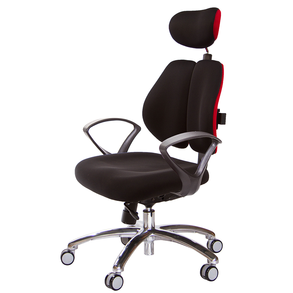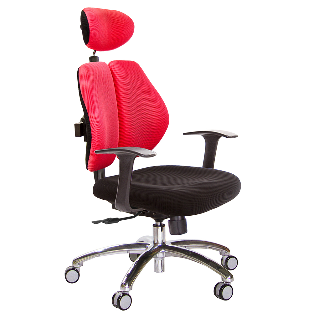 GXG 雙軸枕 雙背工學椅(鋁腳/T字扶手) 中灰網座 型號2706LUA