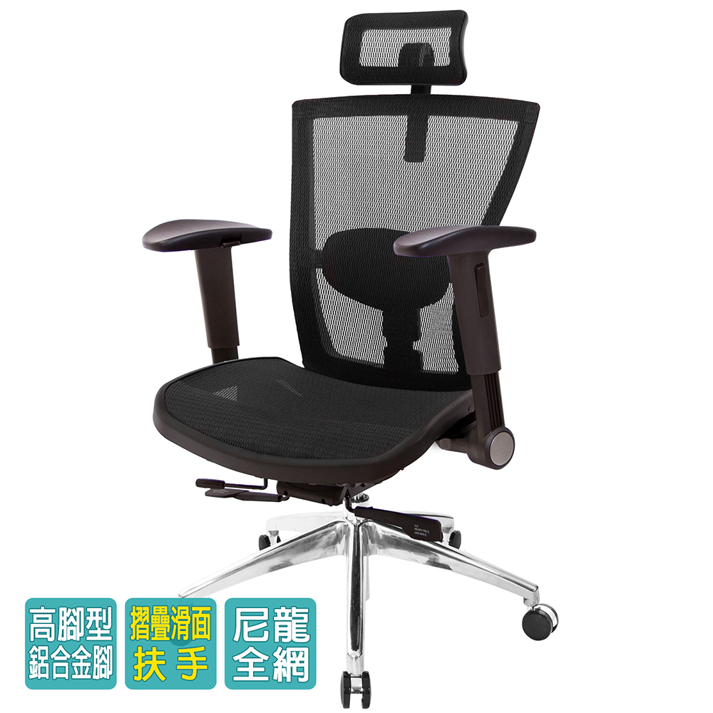 GXG 高背全網 電腦椅 (摺疊滑面扶手/鋁腳) 型號85Z5LUA1J